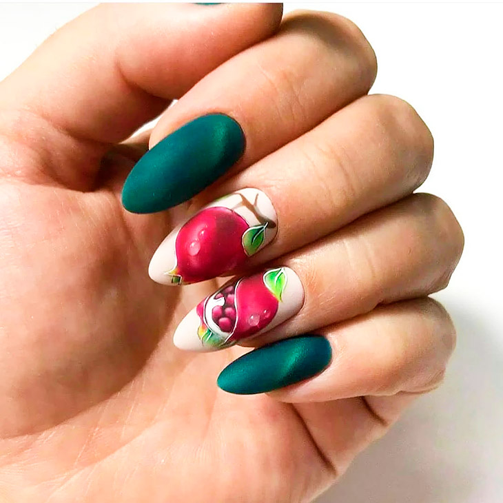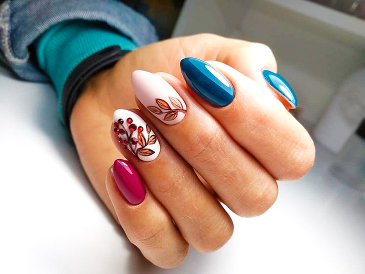 - острая или эллипсоидная формы ногтевой пластины – отличное сочетание с цветовой палитрой;