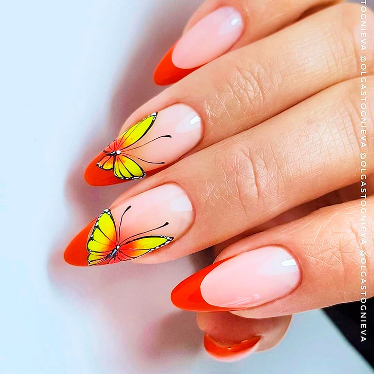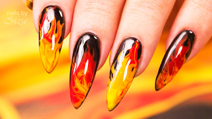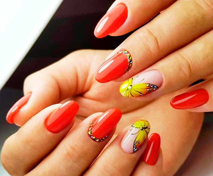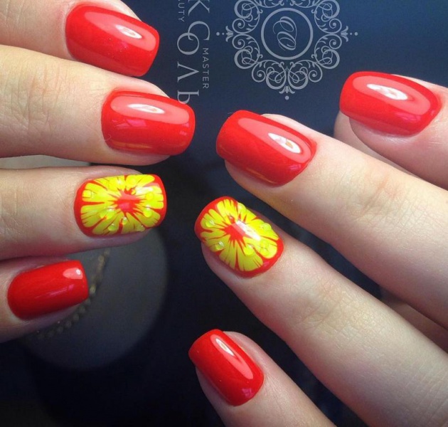 Выбирайте красно-жёлтый маникюр для яркого образа