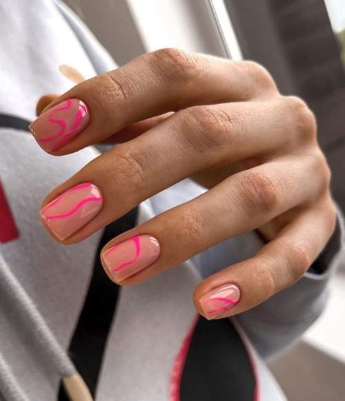 Особенно хорошо мраморный эффект смотрится на коротких ногтях квадратной формы.