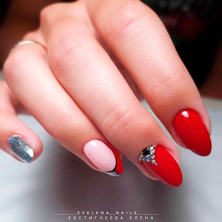 Красный маникюр с серебром — это королевское сочетание классики и стильного дизайна. Маникюр с использованием серебряных красок станет отличным решением для создания праздничного или свадебного образа.
