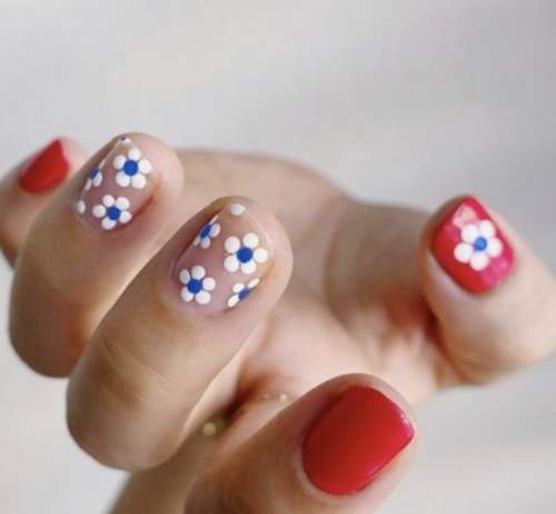 В любом дизайне маникрюра – красный цвет отлично комбинируется с синим