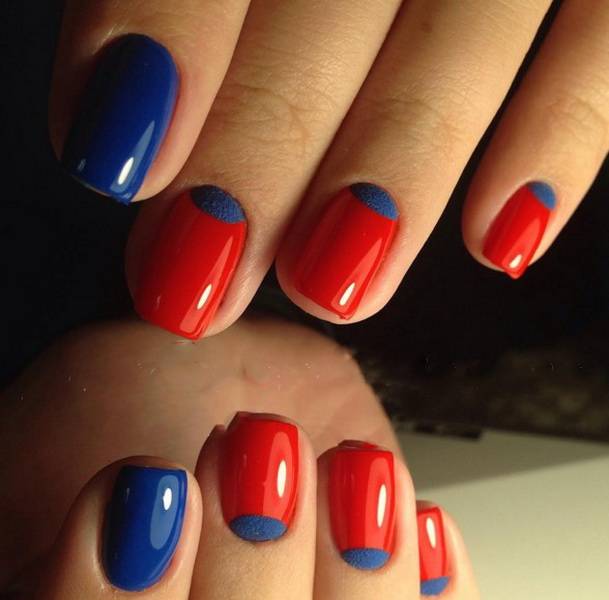 Самая удачная комбинация – красно-синий маникюр, который подходит всем женщинам. Методы выполнения: