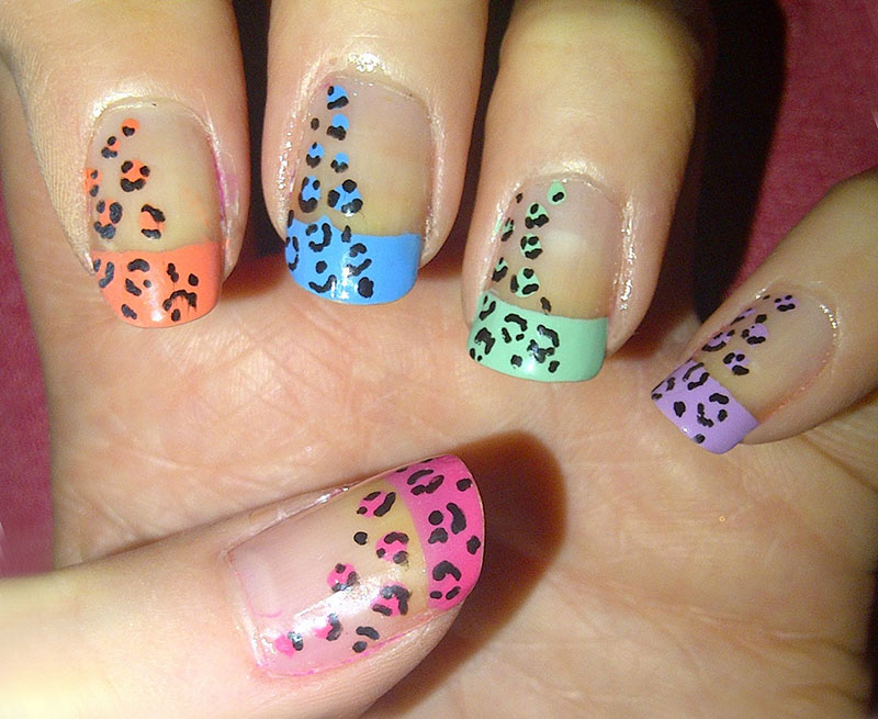 Попробуем сделать его сами, ведь леопардовая раскраска — одна из самых простых и легких. Для начала нужно выбрать не очень яркий базовый цвет. Наносим его, после того как он высохнет приступаем к рисованию крапинок.