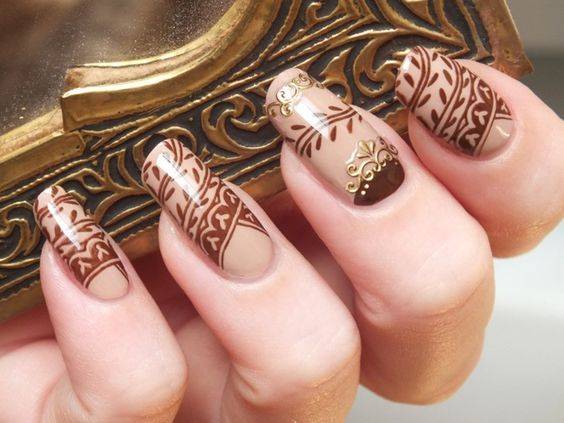 Данный вид дизайна нейл-арта очень легко и быстро исполняется и при этом очень красиво и оригинально смотрится. Чем-то восточный маникюр походит для рисунков хной, которые восточные женщины часто выполняют на своем теле.