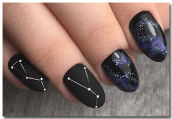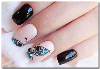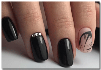 Черный цвет подходит для повседневного ношения. Черный со стразами, блестками позволяет сделать образ выразительным. Цвет отлично сочетается с любыми оттенками. Для смягчения рекомендуется использовать матовое покрытие, меланж, серебристый глиттер. Бульонки и камни помогут сделать акцент на прикорневой зоне, геометрии и цветов. При создании маникюра могут использоваться прозрачные или черные кристаллы.
