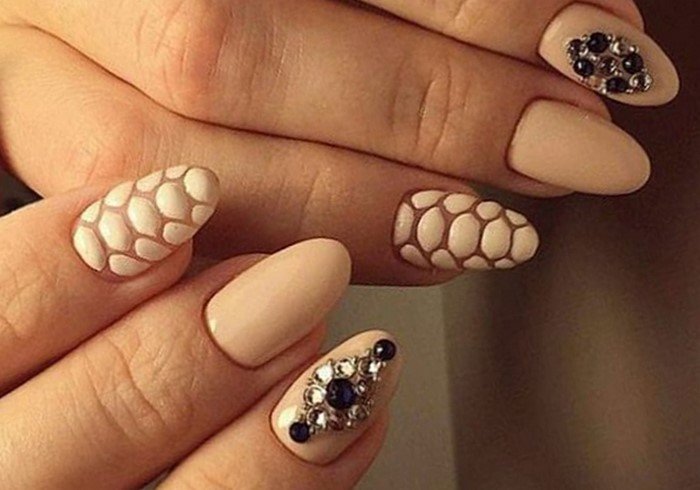 Модный дизайн ногтей со стразами и бульонками не теряет популярности в 2021 году