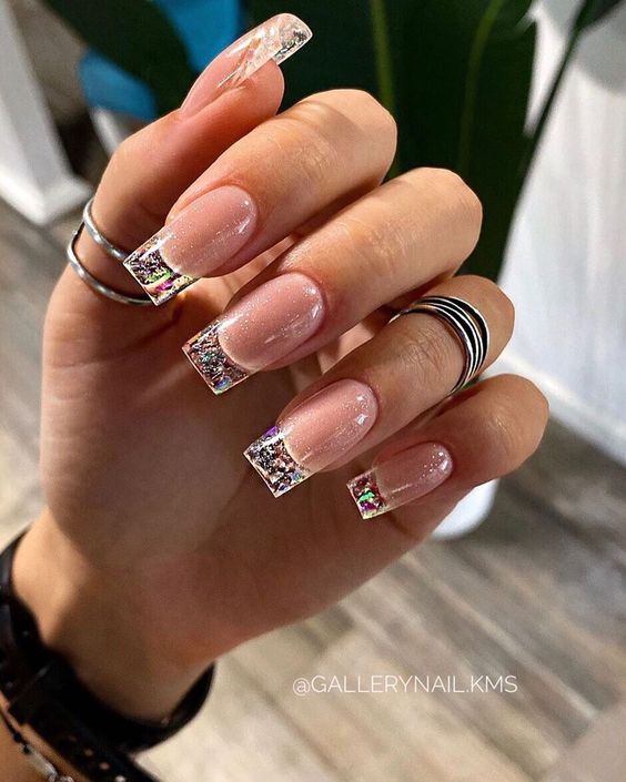 #2 Нежный френч с глиттером: оригинальная новинка сезона