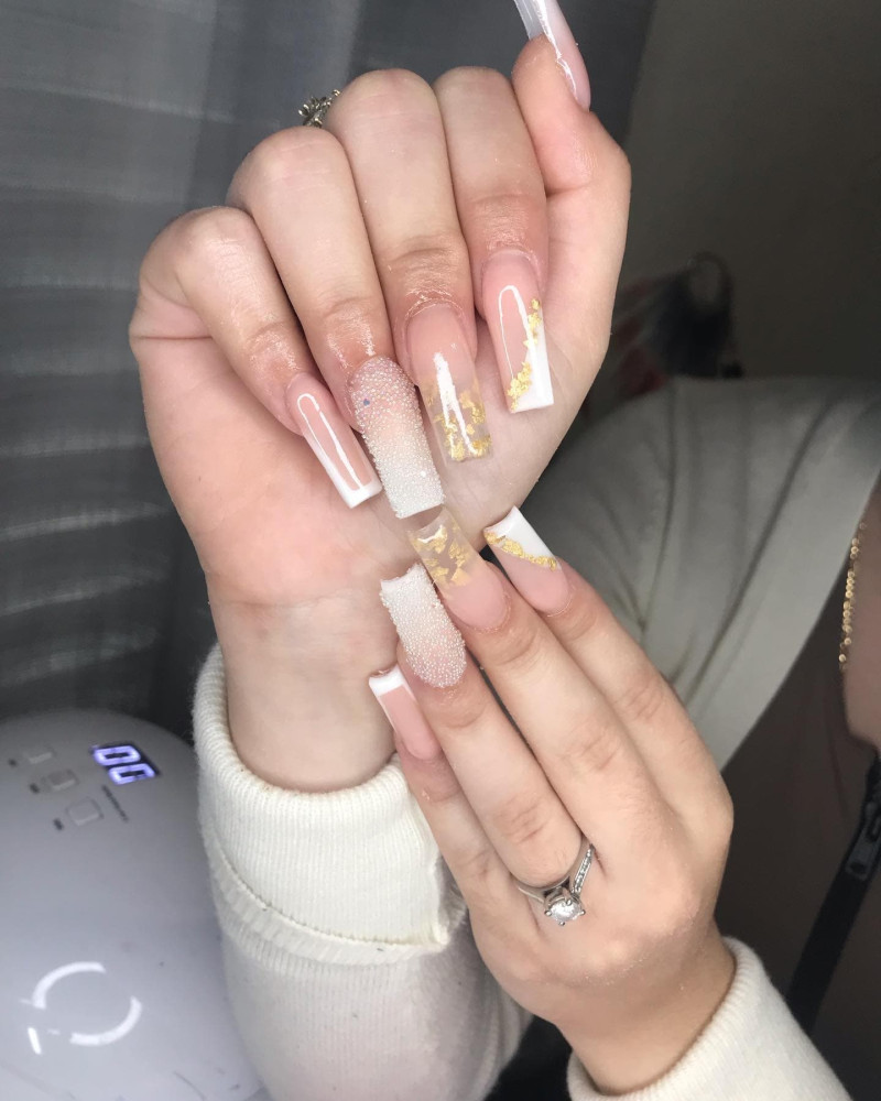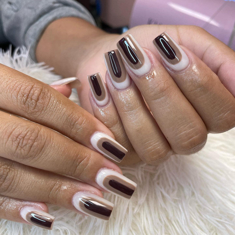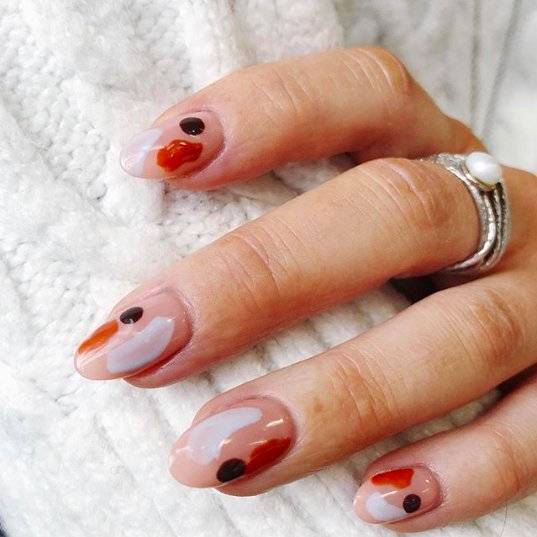 Такой маникюр позволяет продемонстрировать хороший вкус и раскрыть вашу творческую натуру. Добавьте на нейтральный фон немного хаотичных мазков, будто бы сделанных кистью художника. Позаботьтесь о том, чтобы цвета гармонировали друг с другом; результат будет говорить сам за себя.