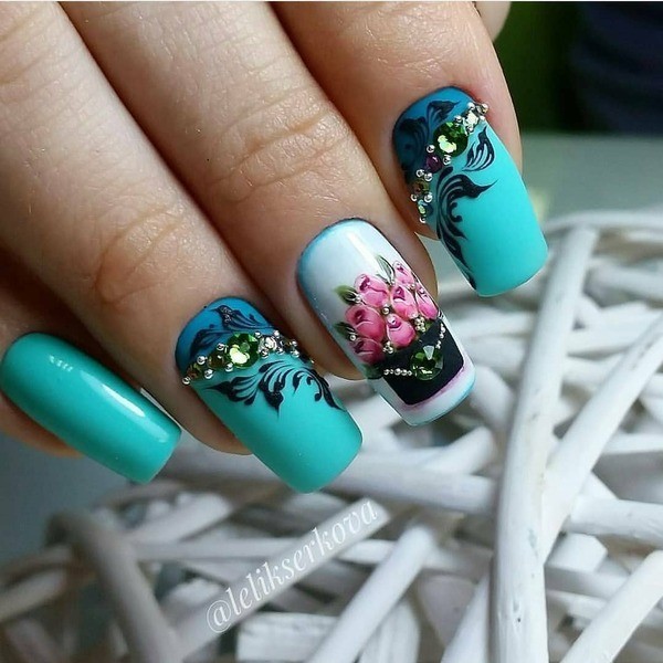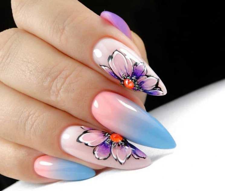Весенне-летний маникюр с рисунком: цветы на ногтях