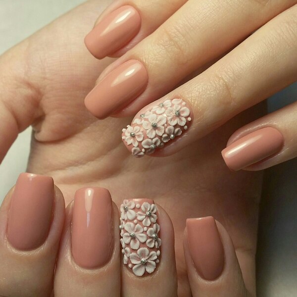 Для тех девушек, которые не любят вызывающий маникюр с рисунком цветов, предлагаем нежный однотонный маникюр с цветами.