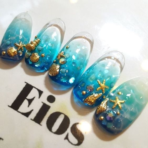 Аквариумный дизайн в искусстве нейл-арта появился относительно недавно. С его помощью можно красиво оформить как длинные, так и короткие ногти. Суть этой технологии состоит в том, что объёмный рисунок создаётся под акриловым покрытием ногтя.