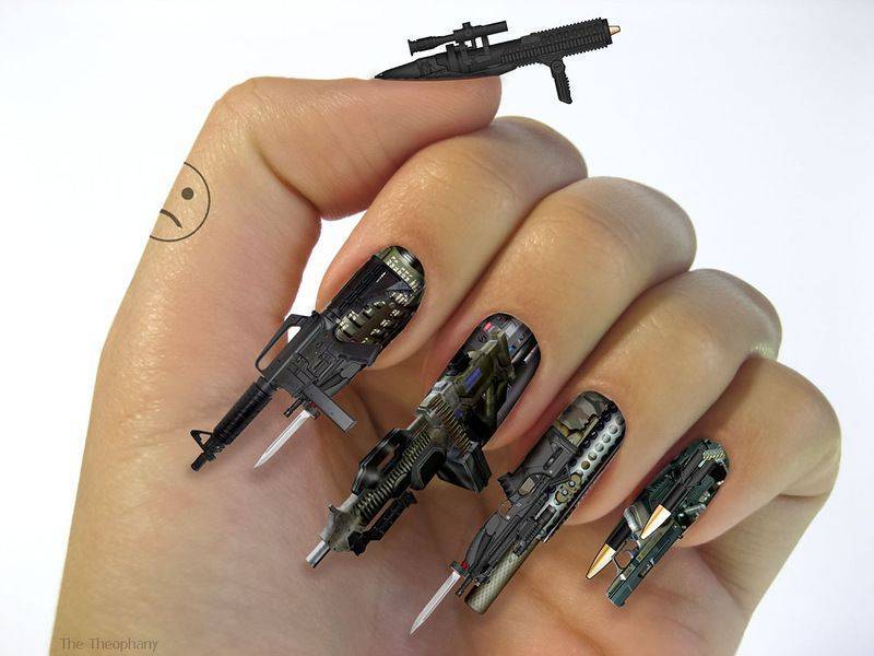 Как вариант дизайна на каждом ногте можно изобразить схематический силуэт девушки, и только на одном ногте – ее лицо.