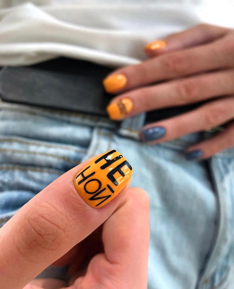 Смелые или сладкие фразы, всевозможные слова и буквы – непосредственные участники создания очень эффектных дизайнов ногтей в этом сезоне. Тематические надписи, слоганы, фразы из фильмов и литературных произведений, девизы и признания в любви – неотъемлемая часть стильных идей маникюра в таком дизайне. Яркий и запоминающийся образ в этом случае вам дан.