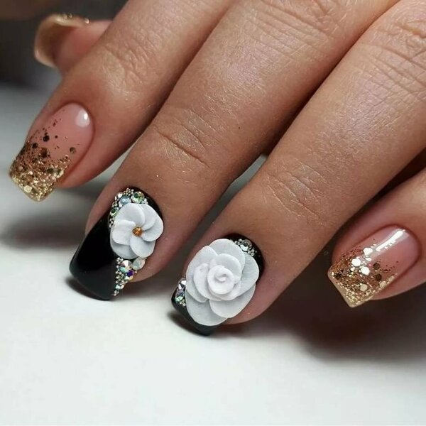 Особенно если такой маникюр украшен стразами, блестками и другими декоративными элементами.