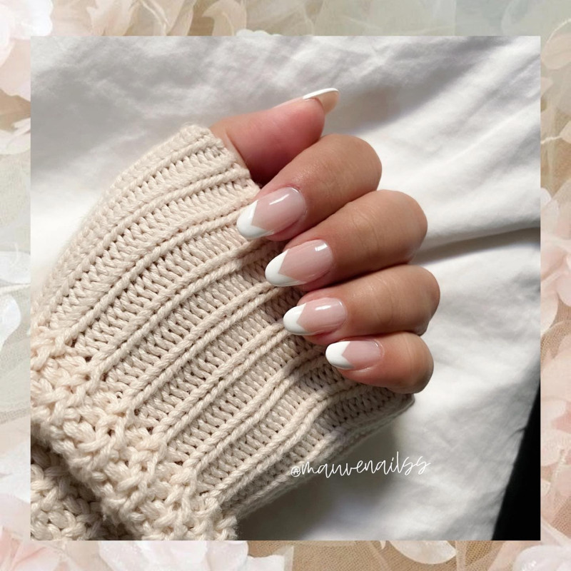 Вы получите красивый маникюр, сделанный со вкусом. Кстати, он подойдет не только тем, у кого форма ногтей овальная; если ногти острые, то обрамление тоже выйдет изящным — в виде капли.