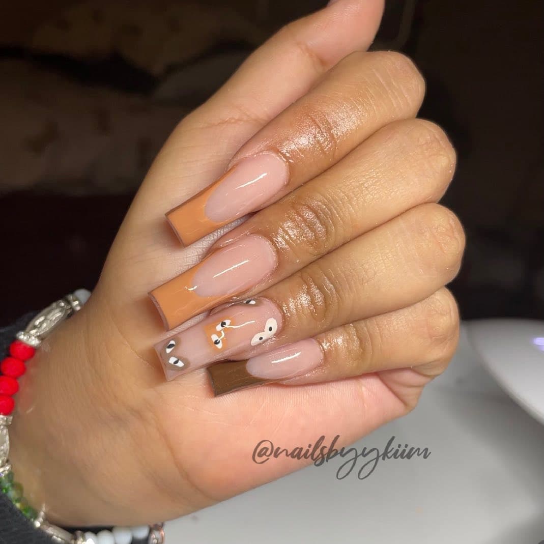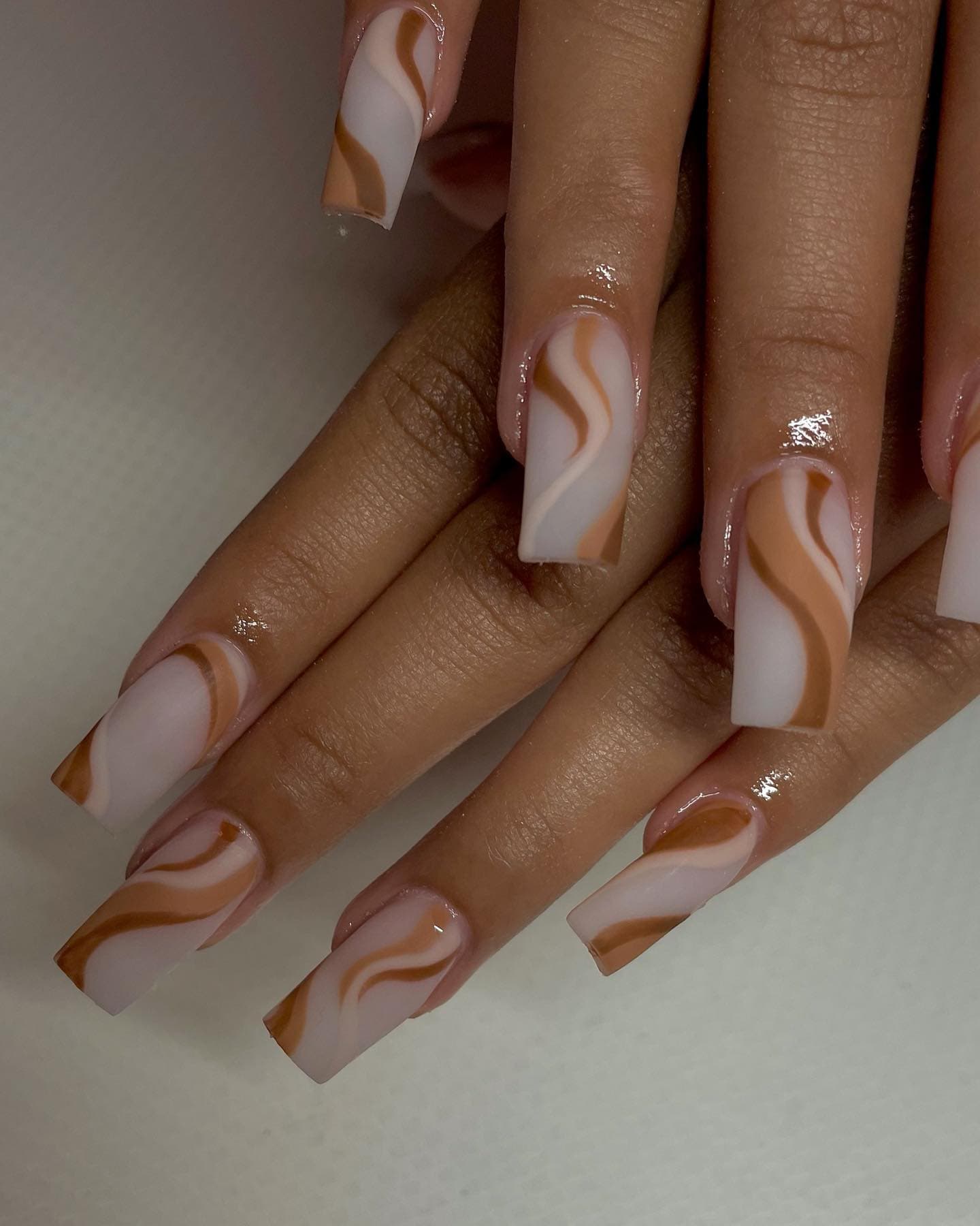 Это настоящий хит осеннего сезона 2022 года. Коричневый многим модницам уже надоел, а карамель внесет в дизайн разнообразие. Такой маникюр обычно выбирают спокойные и уравновешенные леди. Он прекрасен как в однотонном исполнении, так и с добавлением каких-либо элементов декора.