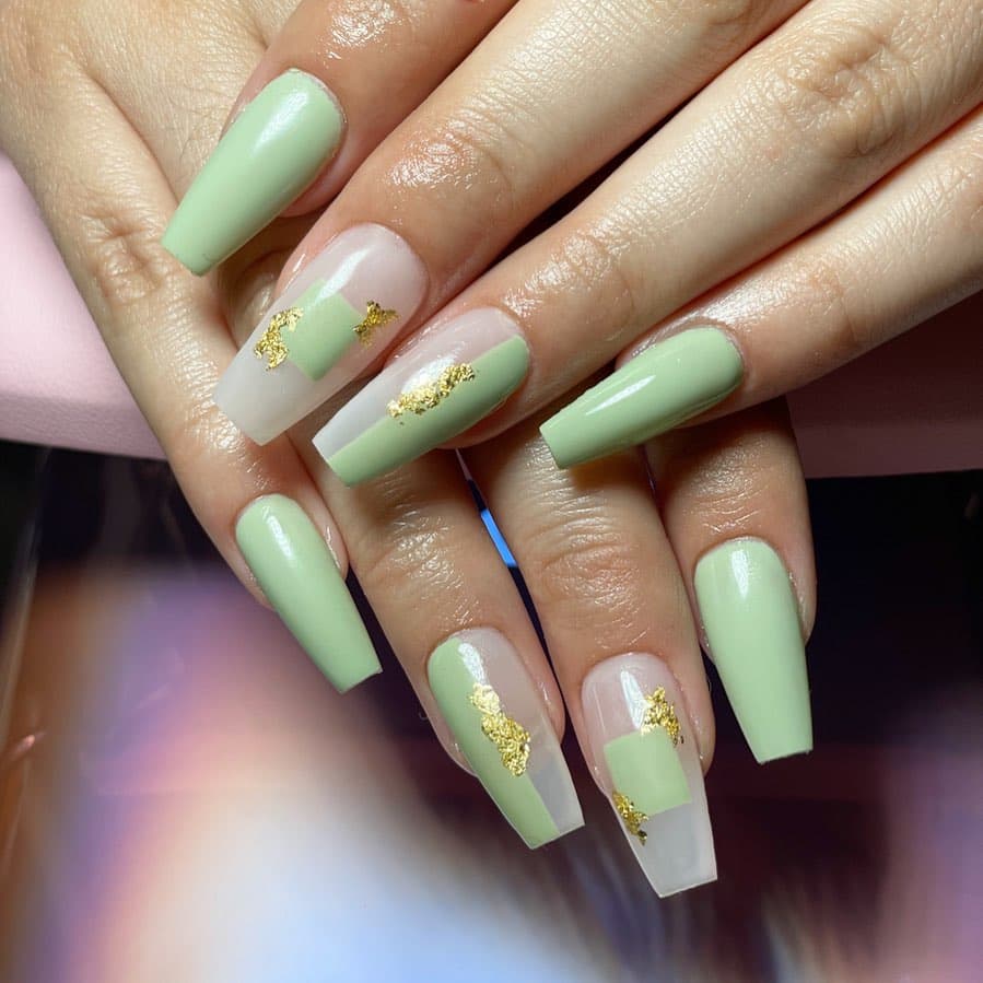 За элегантность маникюра может отвечать одна маленькая деталь. Ею может стать, например, золотая или серебряная рамка вокруг основного цвета. Если на небольшой длине такой прием визуально уменьшает ногтевую пластину, то в случае с длинными ногтями бояться нечего.