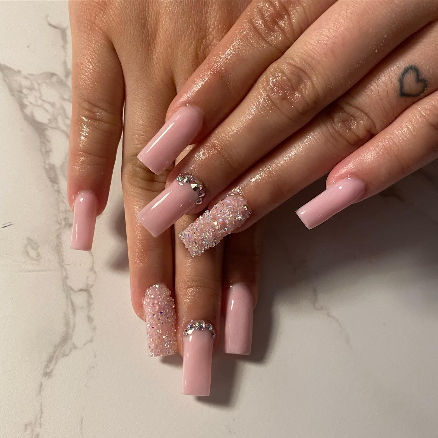 Освежить и разнообразить дизайн помогут стразы, слайды и глиттеры. Хорошо смотрится повседневный маникюр, дополненный френчем или втиркой. Главное — не переборщите с декором. Конечный результат должен быть нежным и элегантным.