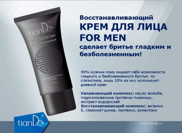 Мужская же кожа, сильнее женской испытывает неблагоприятные воздействия внешних факторов. Также она страдает и становится тоньше из-за постоянного бритья. Питательные кремы для мужчин направлены защищать, выравнивать тон, структуру и рельеф.