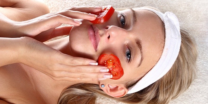 - Томатная маска. Для нее потребуется свежий помидор, очищенный от кожицы и семечек. Чтобы получилось жидкое пюре, протрите его через сито, разбавьте оливковым маслом (неполная чайная ложка). Держать 15-20 мин.