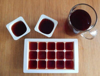 Снимите кастрюлю и дайте настою охладиться в течение 40–45 минут. Профильтруйте раствор и отожмите мешочек. Залейте формочки для льда настоем, поставьте в холодильник.