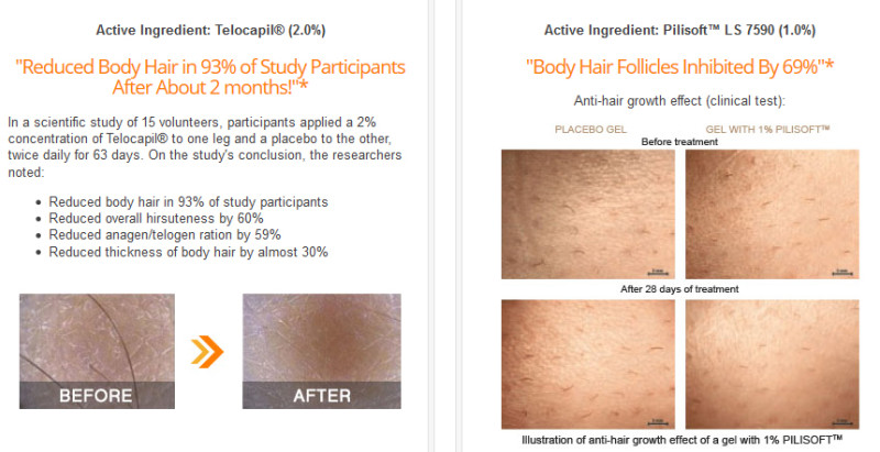 - Overall reduction of body hair in 93% of the volunteers.