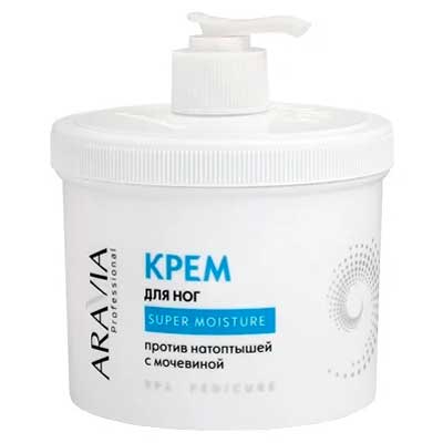 Вторую позицию занимает крем для ног от натоптышей Aravia Professional Super moisture. Этот продукт не только решает проблемы сухой кожи и гиперкератоза (утолщения рогового слоя), он обладает свойствами успокаивать, заживлять, восстанавливать мягкость и эластичность кожи. Рекомендуется производителем для завершающего этапа педикюра.