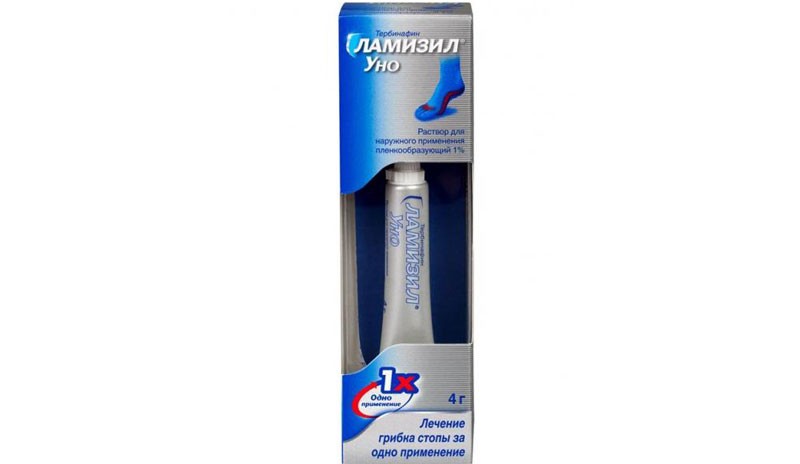 Основным веществом является гидрохлорид тербинафина, а также в состав входит этанол, акриловая кислота и триглицериды. Имеет запах спирта. На вид вязкая жидкость желтоватого цвета. Курс лечения составляет 2-4 недели в зависимости от сложности заболевания. Устраняет поражения ногтей и кожи, избавляет от покраснения и раздражения. Объем: 4 г.