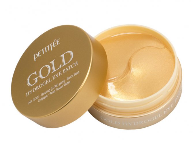 Эти косметические накладки укрепляют мышцы, восстановливают клетки, улучшают циркуляцию в сосудах. Составляющие лепестков позволяют быстро скрыть нежелательные отеки, которые часто появляются впоследствии короткого сна. Экстракты растений насыщают кожу полезными микроэлементами и расслабляют ее, снимают усталость, а золото питает, поддерживает регенерацию и предупреждает появление морщин в будущем. Охлаждающее средство производится в виде подушечек золотого цвета. Упакованы в пластиковый контейнер. В наборе идет шпатель для комфортного применения.