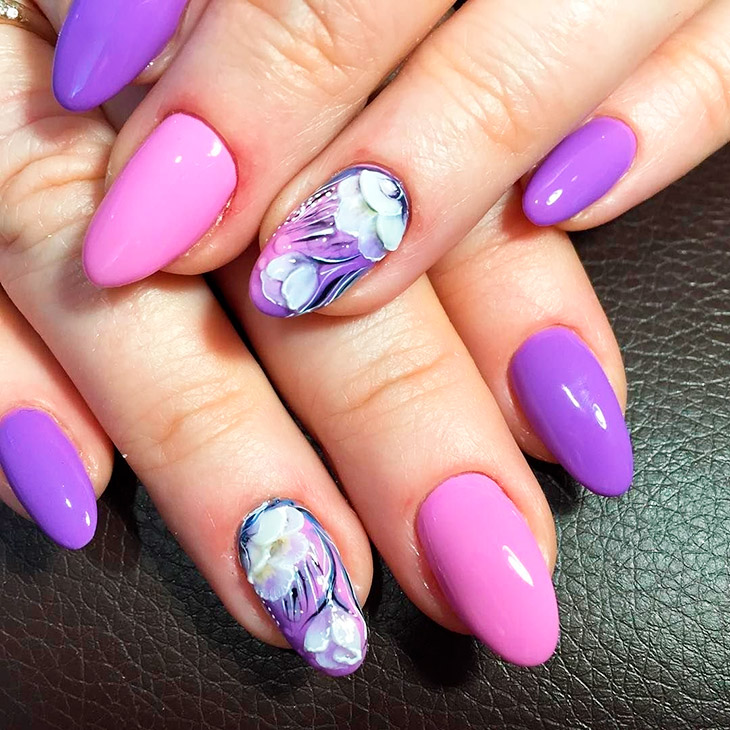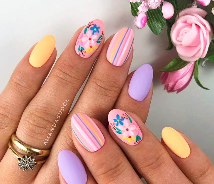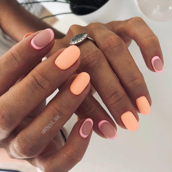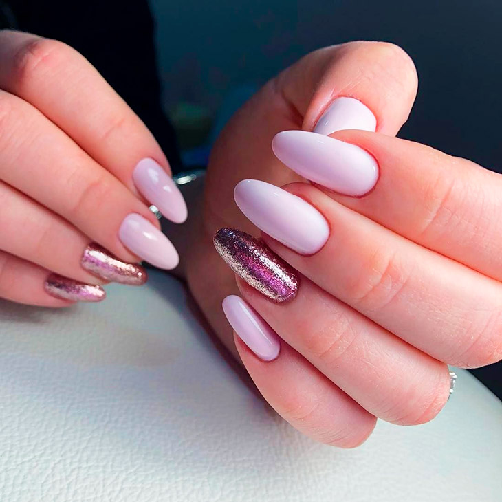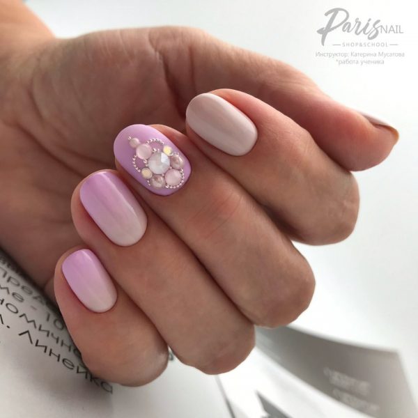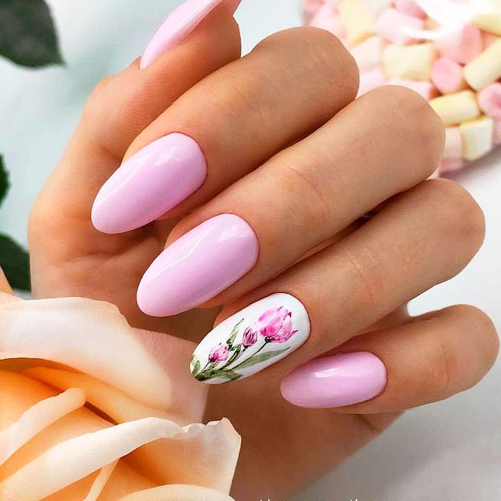 Несомненно, выигрышная комбинация — овальные ногти и пастель. Лучшим сочетанием станет розовый, персиковый, голубой и мятные оттенки. Чуть менее приятно будет выглядеть сиреневый цвет, который в сочетании с овалом производит слабое впечатление.