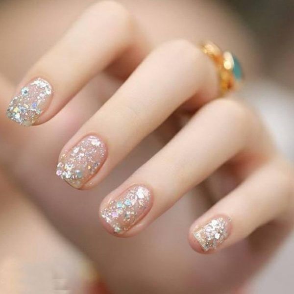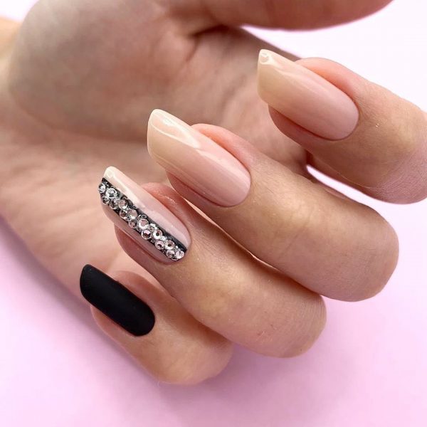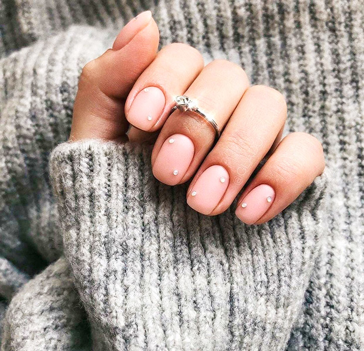 Блеск. Маникюр на короткие ногти вполне можно украсить глиттером или некрупными стразами. Да, в 2022 году этот дизайн по-прежнему остается актуальным. В качестве основы возьмите нюдовую палитру — так блестящий нейл-арт будет проще вписать в повседневные образы. А вот для выхода в свет можно выбрать что-то более яркое. Однако помните об умеренности.