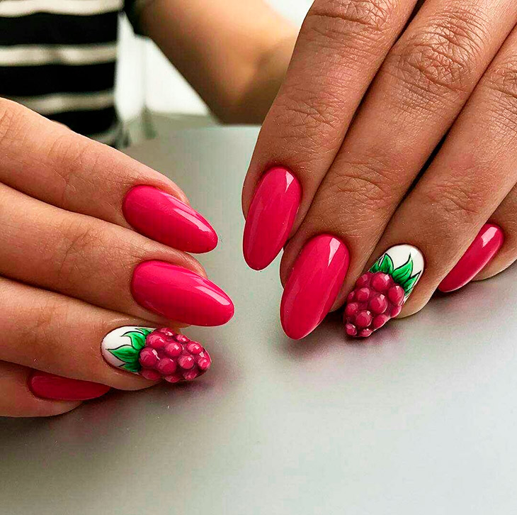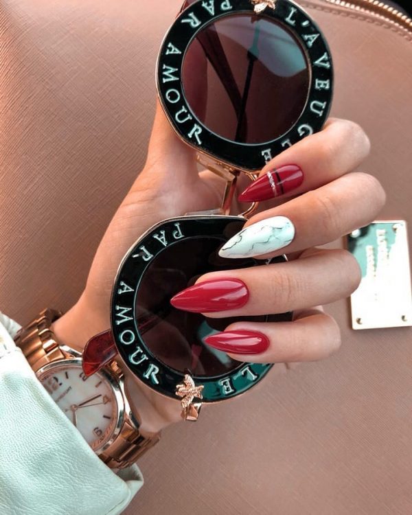Яркий овальный маникюр так же будет выигрышно смотреться на хорошей длине, а на коротких впечатление более смазано. Несомненным победителем остаётся ярко-красный цвет, но в этом году в тренды вышел винный бордо.