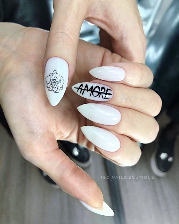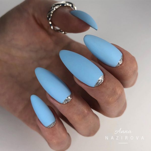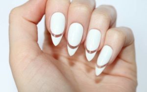 Спасает конечно укрепление гелем или наращивание. Модную форму «миндаль» частенько путают с овалом, однако у миндалевидной формы кончик ноготка более вытянутый. Самым популярным дизайном для этой формы ногтей остается французский маникюр.