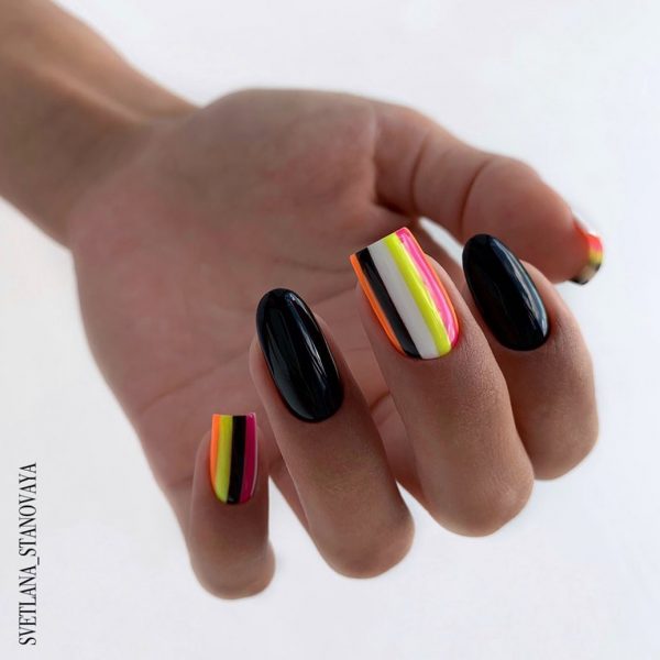 Таким образом, яркий маникюр на овальных ногтях немного уступает моде. Но изысканное сочетание цветов и декора хорошо подойдет молодым девушкам, желающим проявить индивидуальность.