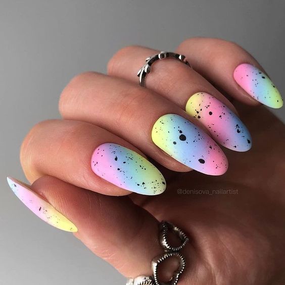 В модном маникюре 2024-2025 овальные ногти поддаются самым смелым и неожиданным вариантам дизайна. Эта форма ногтей отлично гармонирует с разноцветными сочетаниями и идеально подходит для матового монохрома.