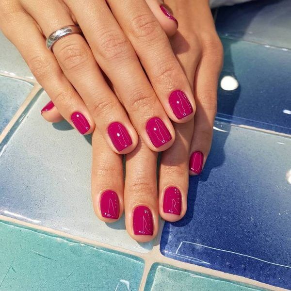Классический монохром. Короткие ногти не требуют того, чтобы их обязательно чем-то украшали. Достаточно нанести в меру яркое монохромное покрытие, чтобы маникюр казался завершенным