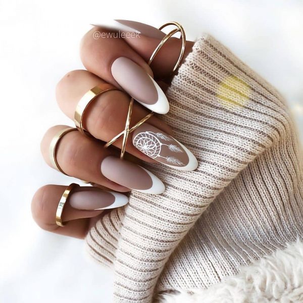 Матовый френч. Это маникюр, который может похвастаться невероятной эстетикой. Смотрится он просто изумительно, несмотря на лаконичность. При создании матового френча не прибегайте к дополнительному декору, не портите то, что и так безупречно. Лучше всего этот нейл-дизайн впишется в деловой и классический модные образы.