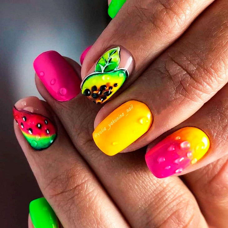 Весенне-летний модный маникюр как всегда радует яркими цветами. Желтый, зеленый, голубой, розовый в сочетании с нюдовыми и пастельными оттенками, цветочным и фруктовым принтом вдохновят на создание солнечного и яркого модного маникюра.