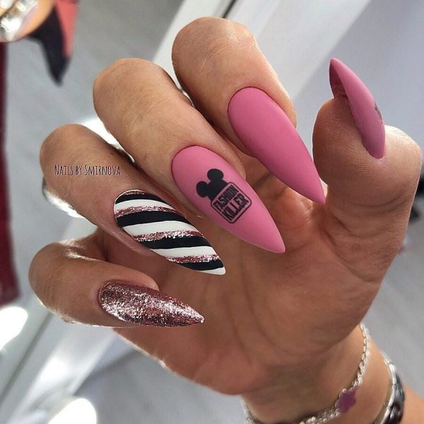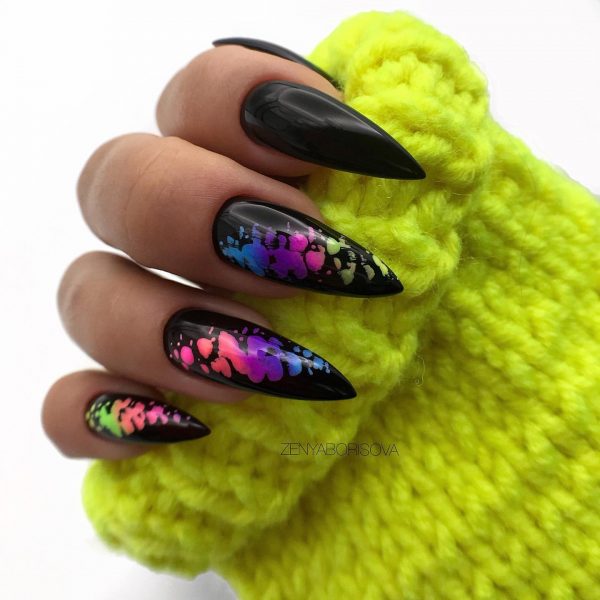 Дерзким и эпатажным всегда считался маникюр на острые ногти. Похоже в этом сезоне его не пытаются сгладить, а наоборот всячески подчеркивают форму ярким и броским дизайном.