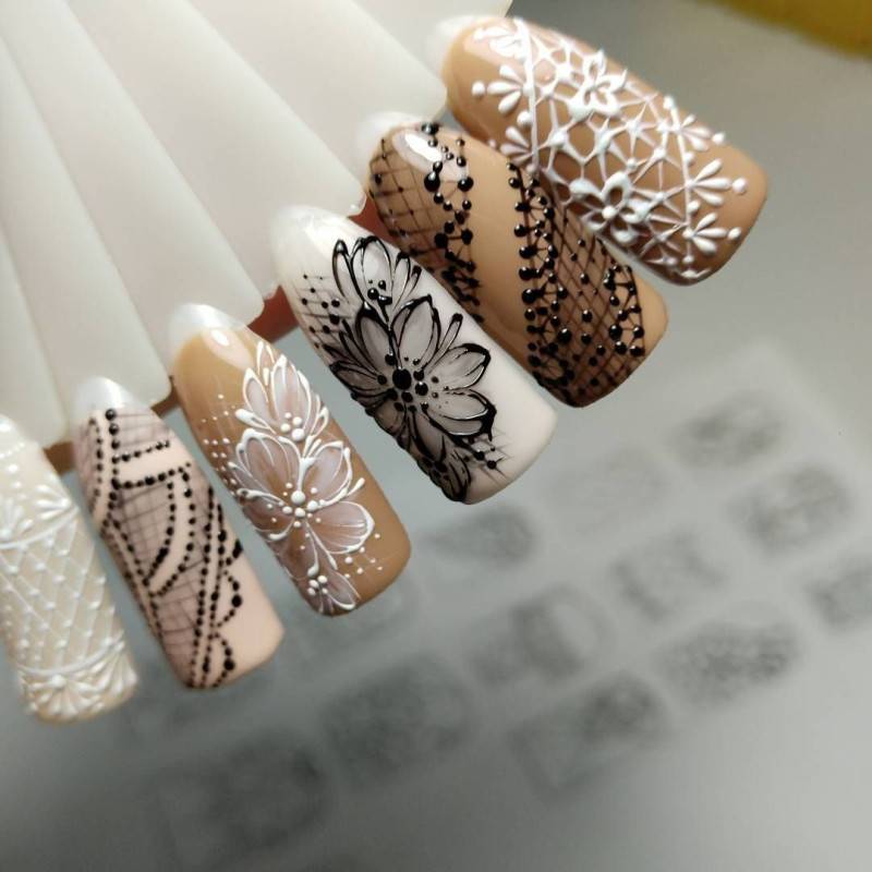 фотогалерея элегантного и стильного кружевного маникюра