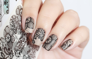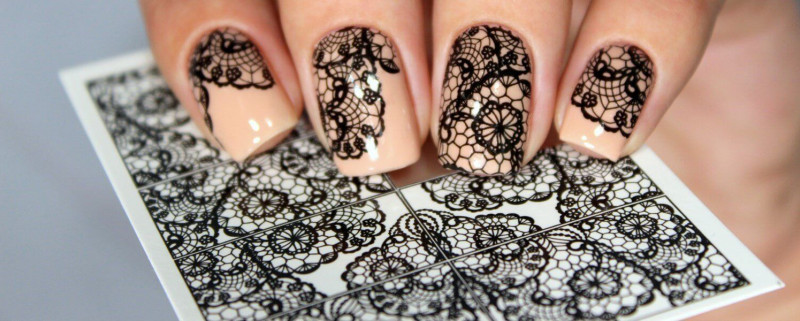 2. При использовании стемпинга, необходимо нанести выбранный цвет лака на стемпинг- диск и с помощью штампа нанести ажурный рисунок на ноготь. Этими способами кружево на ногтях можно сделать в течение нескольких минут.