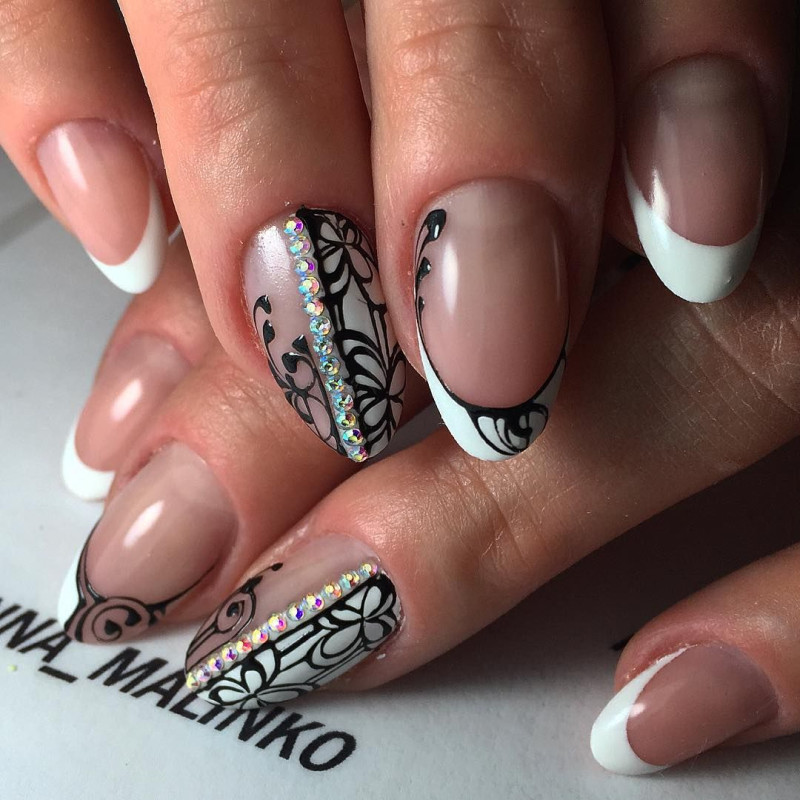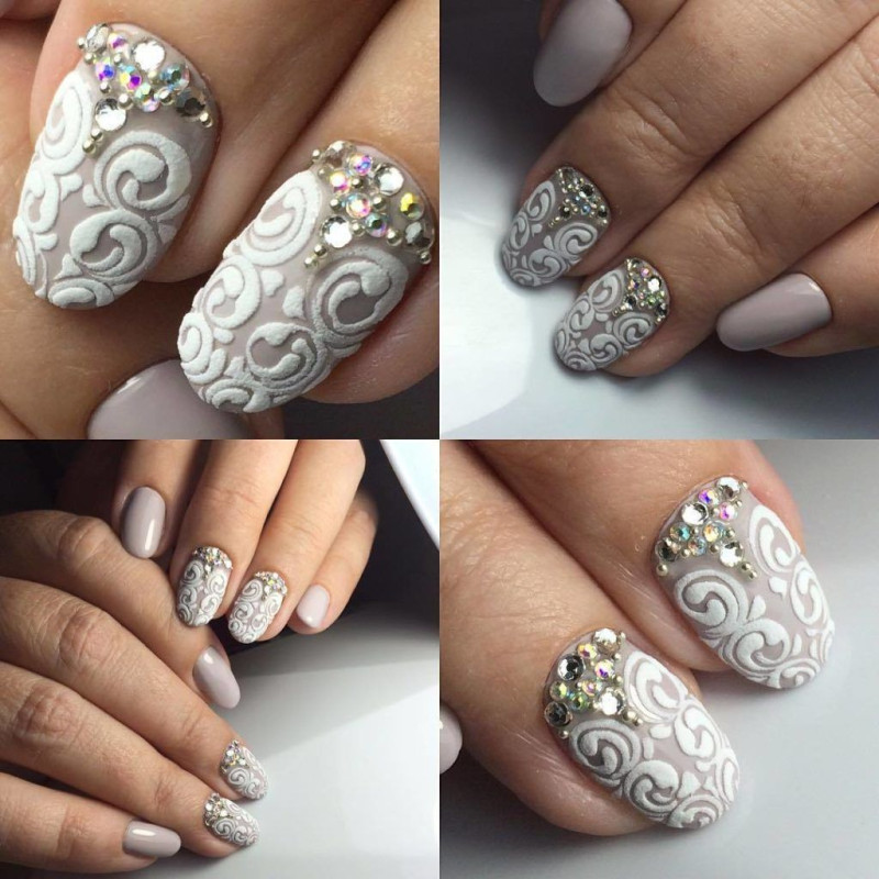 Кружевной маникюр со стразами