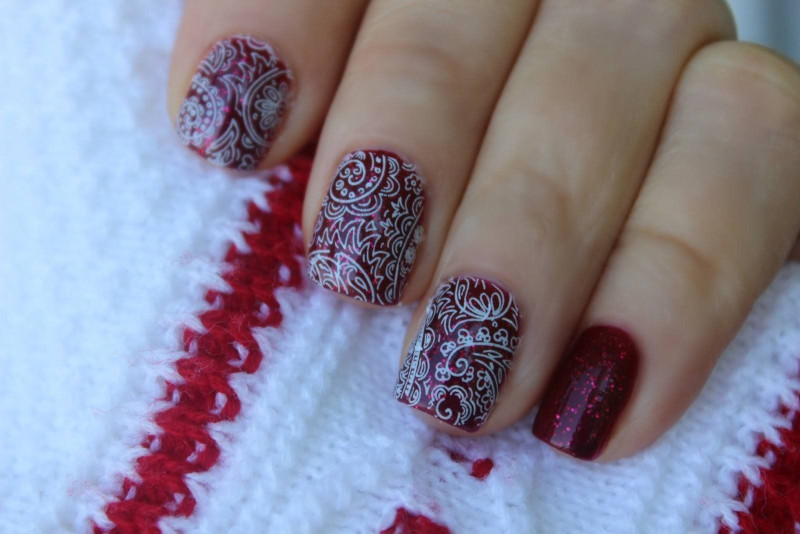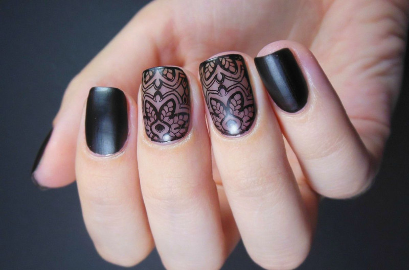 Конечно, у таких трафаретов много мелких деталей и они могут отпечататься не все, но любые узоры можно дорисовать самостоятельно кистью. Не забудьте закрепить результат топом.