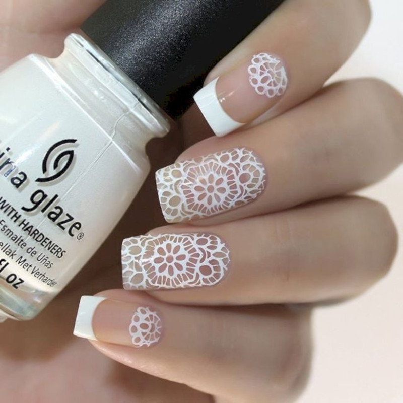 Итак, давайте выполним френч-кружева на ногтях пошагово: