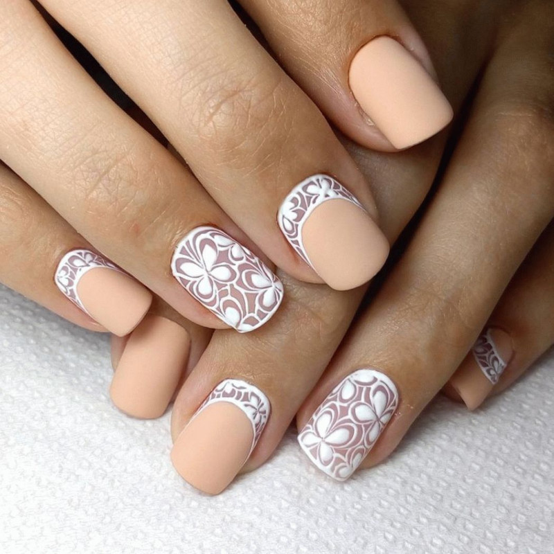 Кружевной маникюр на коротких ногтях