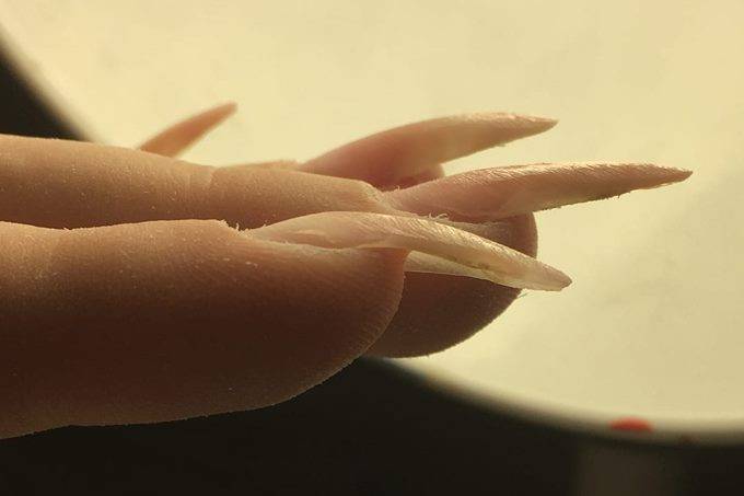 Чтобы маникюр прослужил дольше, а форма оставалась безупречной даже при незначительных ударах, нужно помнить несколько советов. Прежде всего, правильно подбирать длину ногтей. Свободный край не может быть длиннее, чем ногтевое ложе. Иначе из-за большой нагрузки ногти будут ослабленными и уязвимыми даже для малейшего удара. Исключение: наращенные ногти формы “стилет”. Если все правила наращивания такой формы соблюдены, то она прослужит долго.