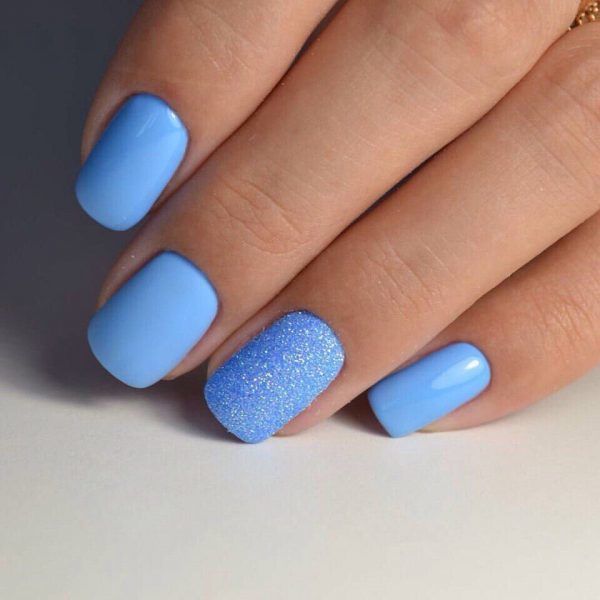 Также как и красный, голубой лак очень выигрышно выглядит на ногтях любой формы. Этот цвет пользуется популярностью, как у мастеров, так и у самих модниц. Поэтому непременно стоит попробовать его в создании модного нейл-арта.