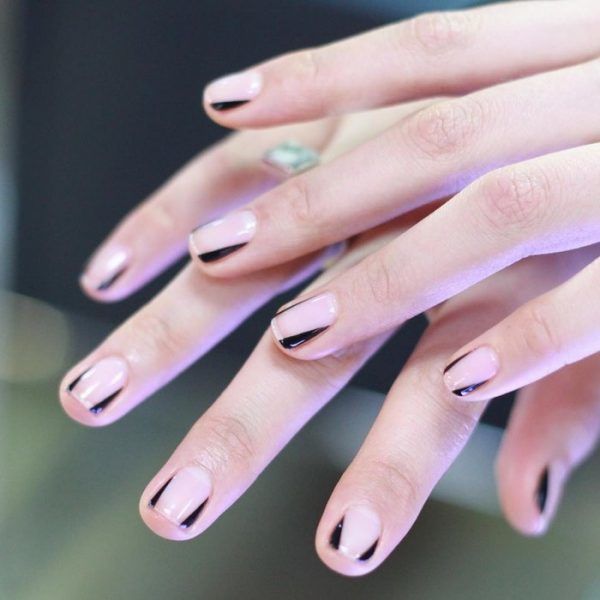 Визуально вытянуть ногти можно и с помощью противоположного приема. Нейл-арт мастера советуют покрыть темным лаком только края ногтя, оставив середину или некрашеной, или прокрасить ее светлым лаком.