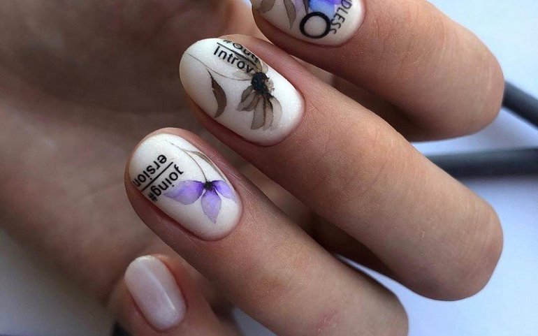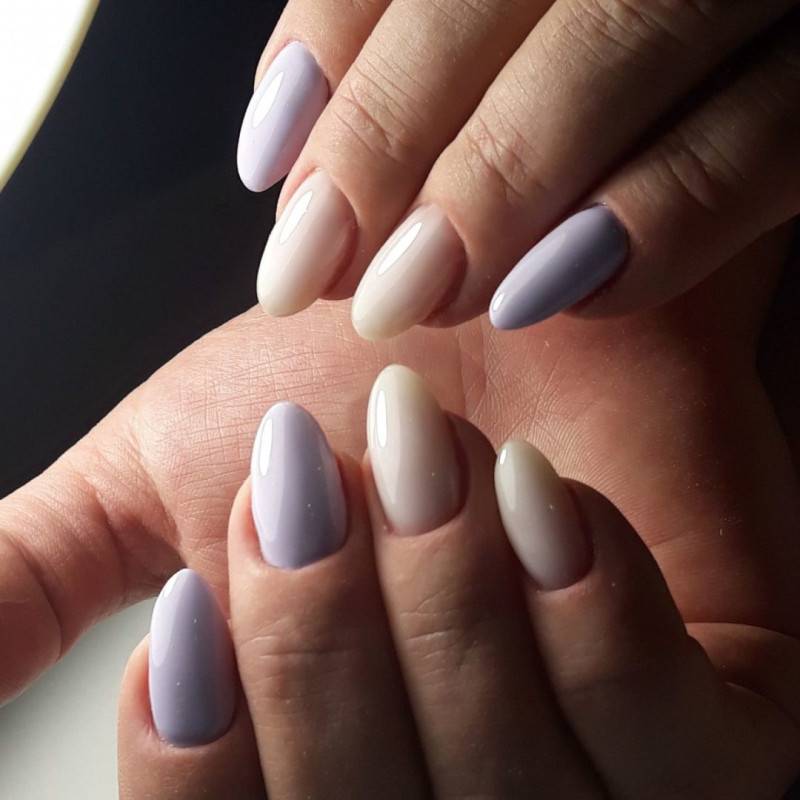 Нежный лак всех оттенков лаванды хорош и сам по себе. Но его можно дополнить красивыми флористическими орнаментами или абстрактными рисунками. В лавандовых тонах также очень хорошо смотрится градиент.