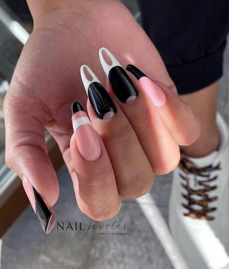 - нюдовая основа с чёрными, либо яркими дополнениями в виде узоров;